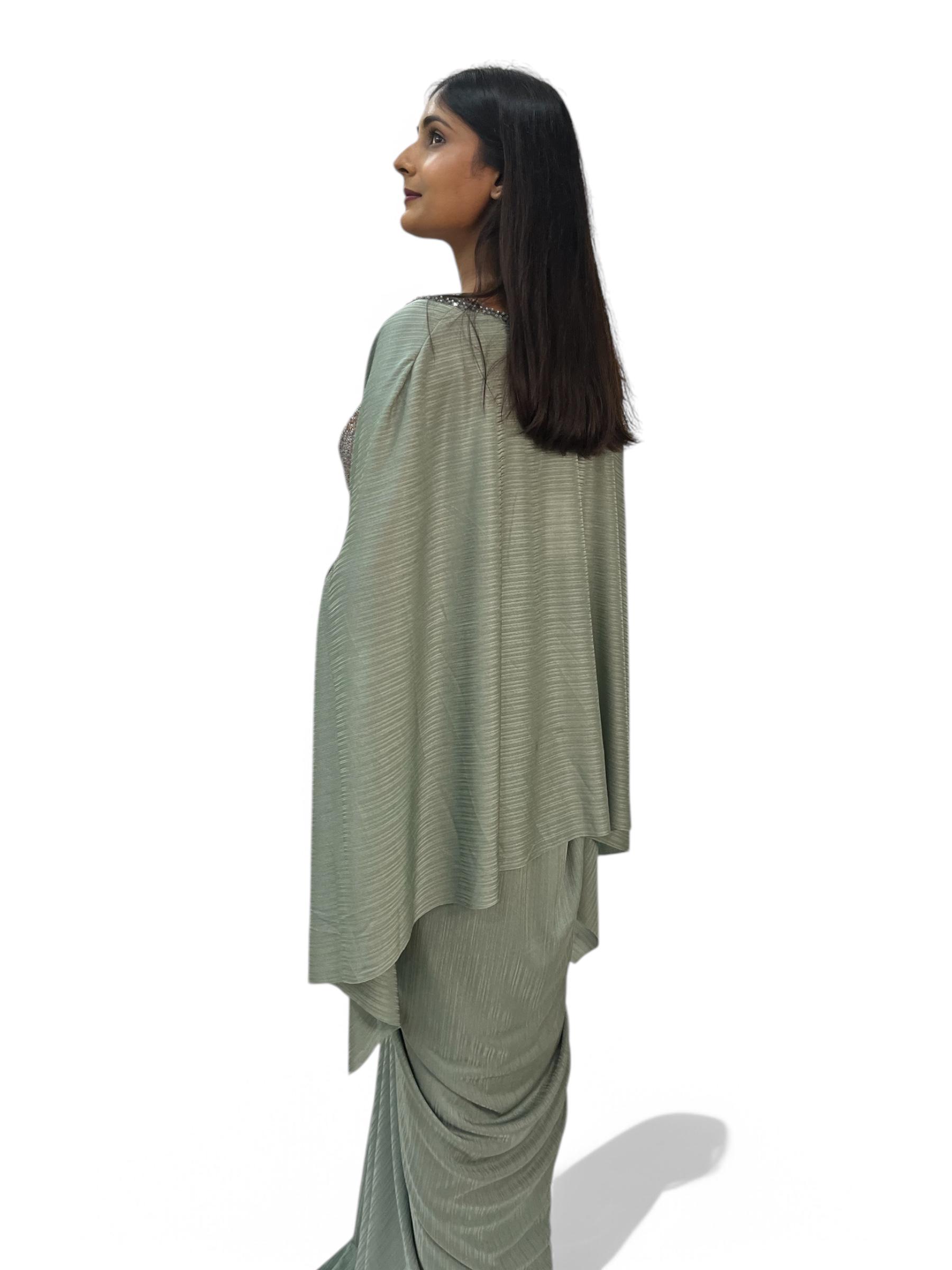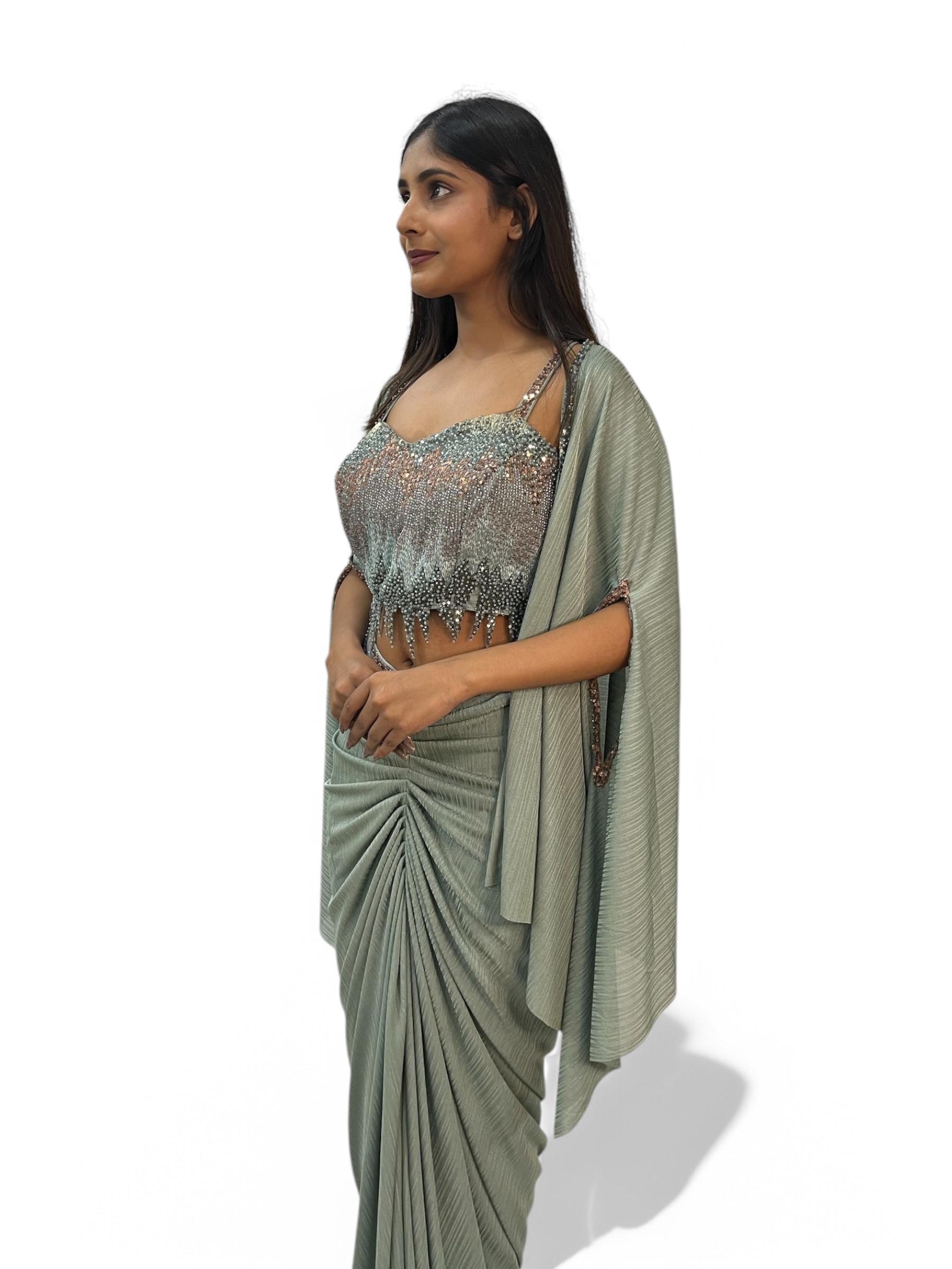 The draped skirt features asymmetrical or gathered fabric detailing, adding a touch of sophistication and movement to your look. Crafted from premium-quality fabric, this outfit ensures comfort, style, and a flattering silhouette, making it ideal for weddings, festive celebrations, or evening events.
