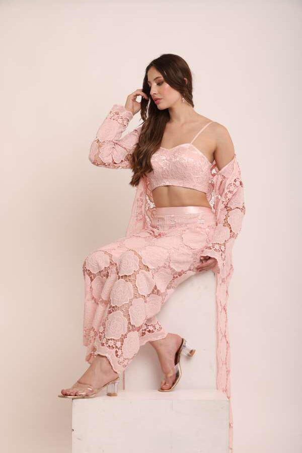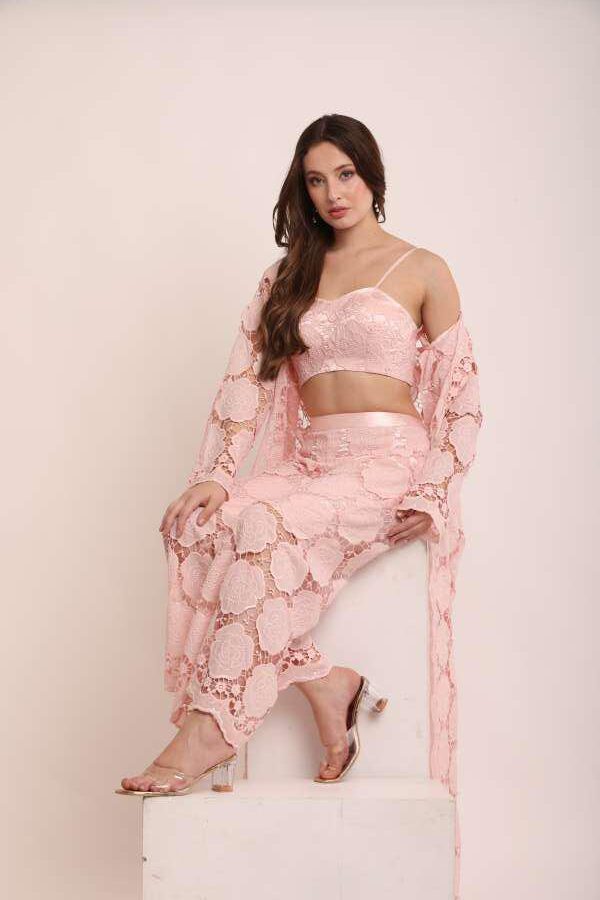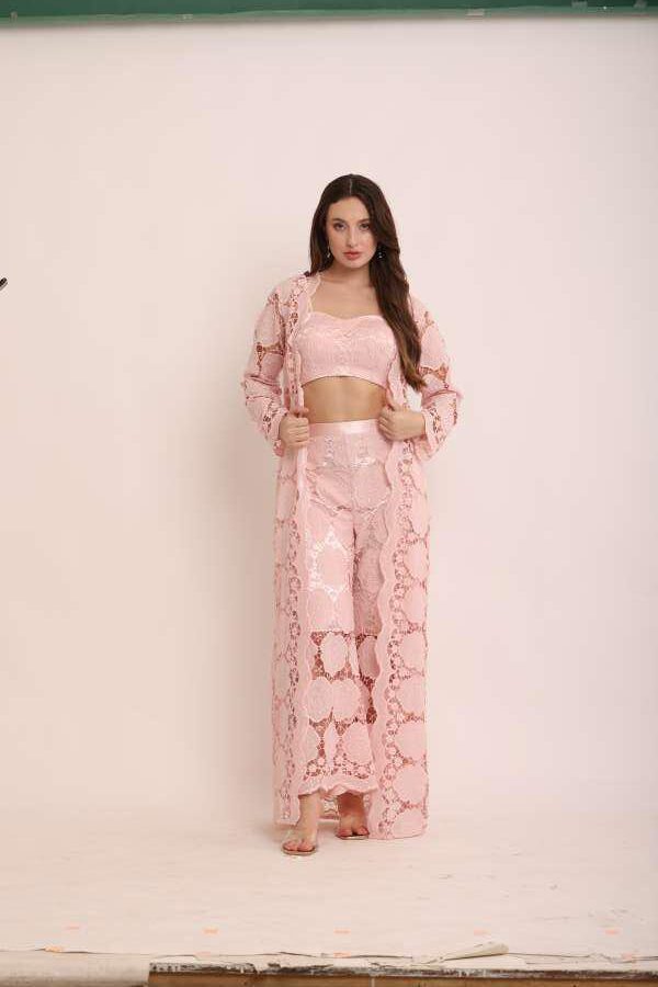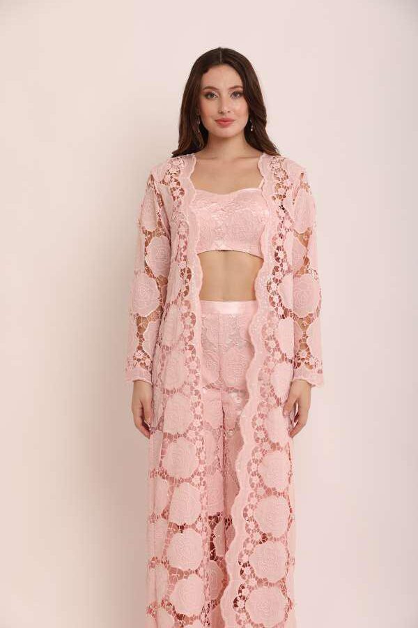 The set includes a chic top, comfortable bottoms, and a flowy shrug that adds a contemporary touch to the overall look. Crafted from premium-quality fabrics, this 3-piece outfit offers a flattering fit and ensures maximum comfort, allowing you to move effortlessly in style.
