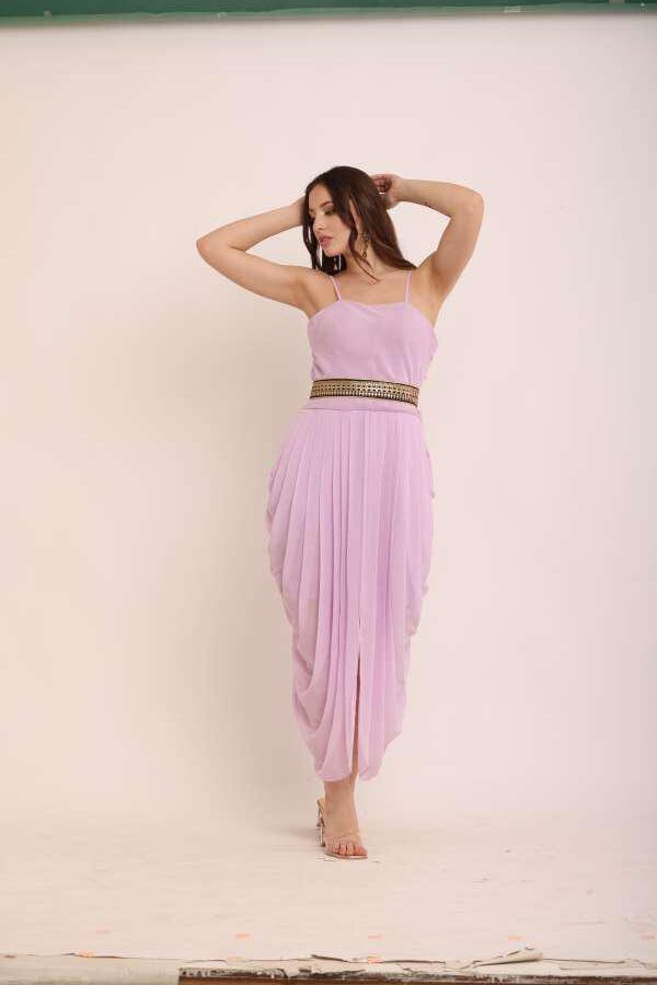 Step into style and make heads turn with this dhoti jumpsuit with a full-length jacket—your go-to outfit for effortlessly standing out.