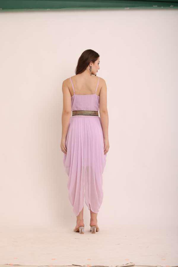Whether you pair it with statement jewelry for a grand celebration or keep it minimal for a classy look, this versatile dhoti jumpsuit with a full-length jacket is a must-have for your wardrobe.